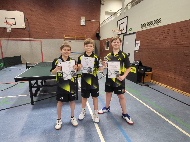 So vorbereitet ließen Theo Kuhn, Silas Höhn und Leo Vietmeier im Endspiel keinerlei Zweifel aufkommen. Jeder der drei gewann sein Einzel mit 3:0. Im anschließenden Doppel