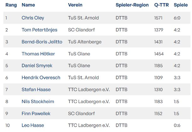 Auch wenn es für die heimischen Teilnehmer des TTC Ladbergen nicht zu Platzierungen im oberen Drittel reichte (Leo Haase – Platz 10, Nils Stockheim – 8, Stefan Haase – 7), stand der Spaß am Wettkampf und die Erfahrung im Vordergrund. Eine Wiederholung des Formats ist nicht ausgeschlossen.